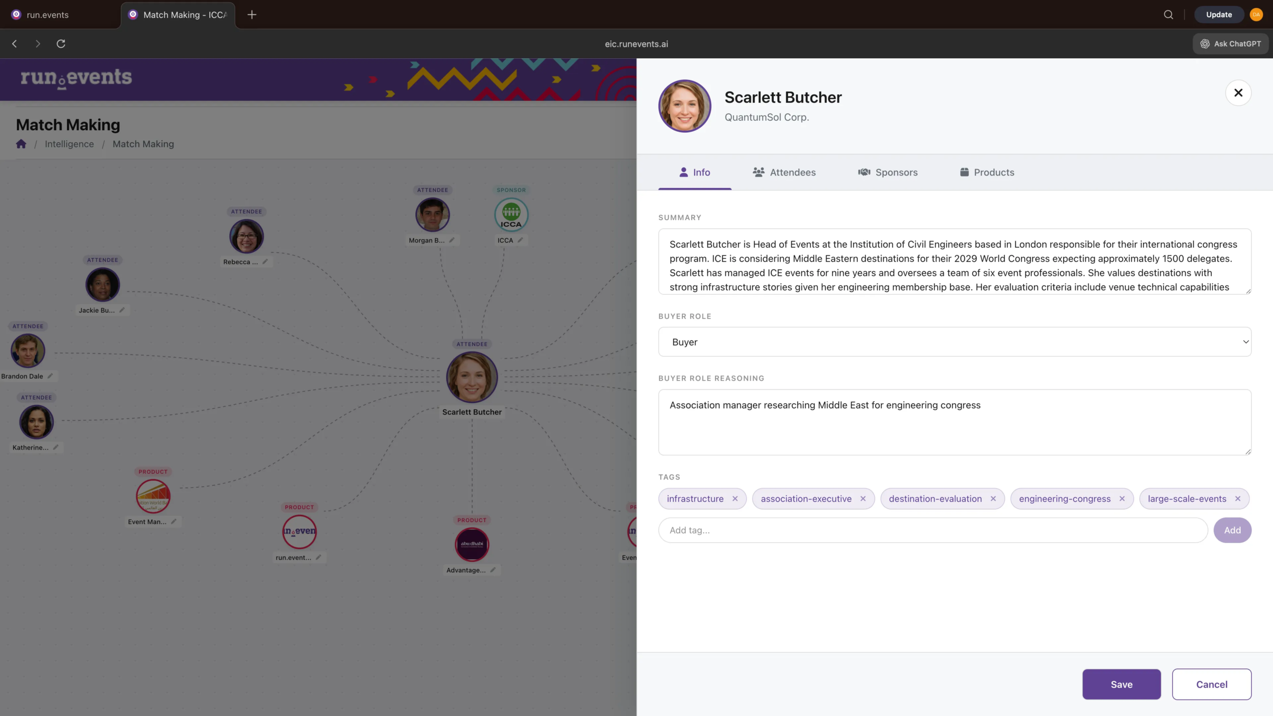 Participants can browse attendee profiles, send meeting requests, and manage their business meetings in one place.